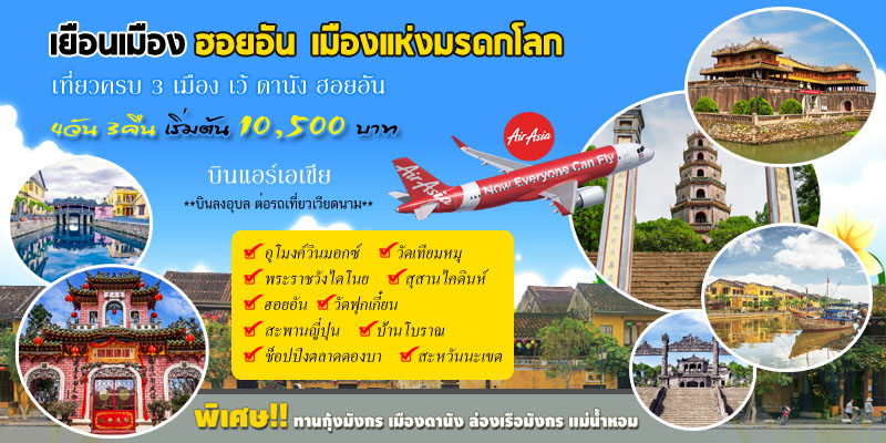 Vn1A ท่องเที่ยวเวียดนามกลาง เครื่องบิน 4วัน 3 คืน ราคาถูก แอร์เอเชีย จากสนามบินอุบล |